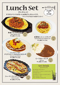 ランチサービスとして、サラダ・ドリンク付きとなりお得なメニューとなっております。ぜひ御利用ください。